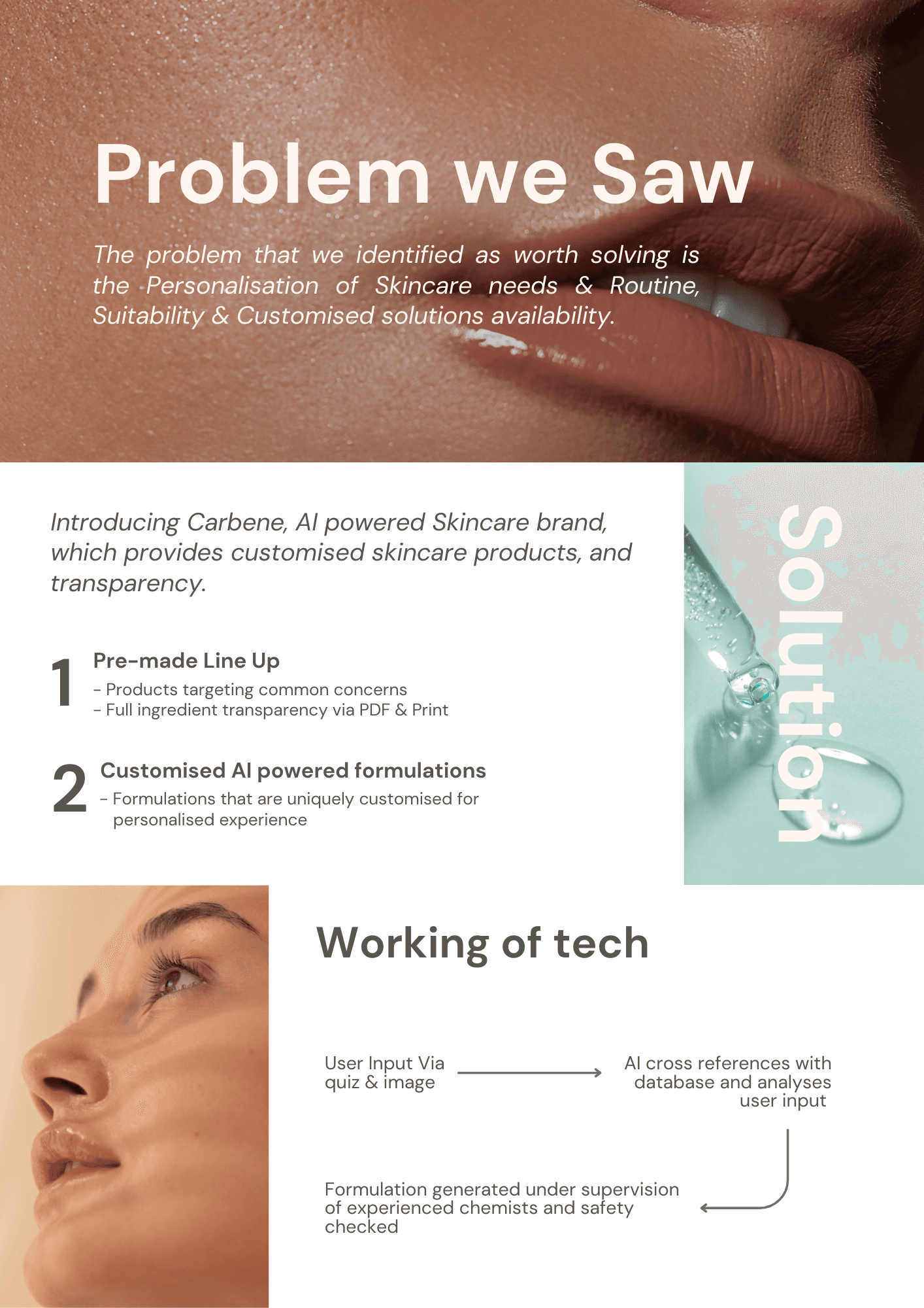 Carbene Care is a mobile-first, AI-driven skincare brand focused on personalization and long-term skin health. The product combines consumer simplicity with scientific intent — helping users understand their skin without overwhelming them with complexity.
